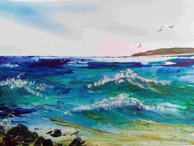 Joan creates watercolours of both calm and dramatic atmospheres drawing the viewer in and encouraging their imagination.