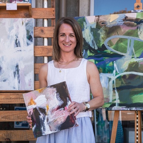 Kylie’s abstract paintings are guided by intuition, emotion, and environment. She loves the challenge of balancing colour, composition, and movement through expressive, gestural brushwork in each piece.