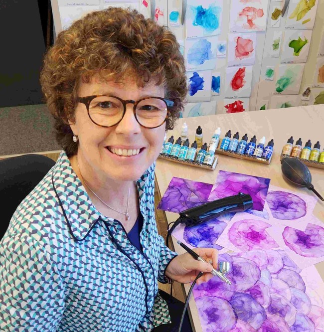 Lucie’s original works in alcohol-based inks, vibrant and often with gold or silver, delight viewers with feelings of wonder and joy. Lucie is a full-time artist with a home studio. Commissions welcome.
